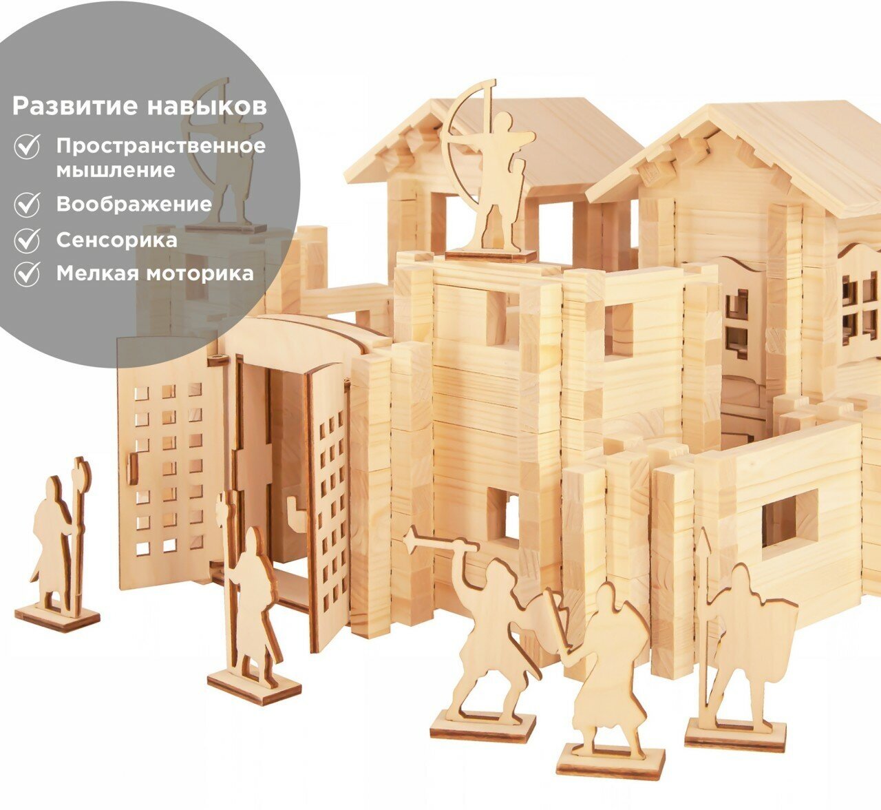 Еще одно важное достоинство деревянных конструкторов - они совместимы друг с другом. Совместное использование нескольких конструкторов разных серий позволит создавать роскошные имения и целые поселения.