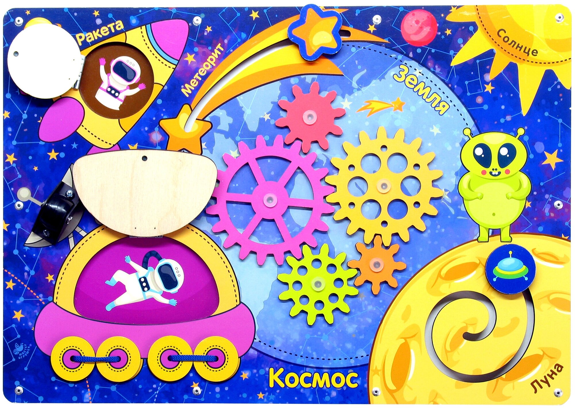 Ребенок изучает разноплановые вещи, расположенные на развивающей доске. Играя с бизибордом, малыш развивает мелкую моторику пальчиков. Играя ребенок, развивает фантазию. Окунитесь вместе с ребенком в неизведанный мир космоса.