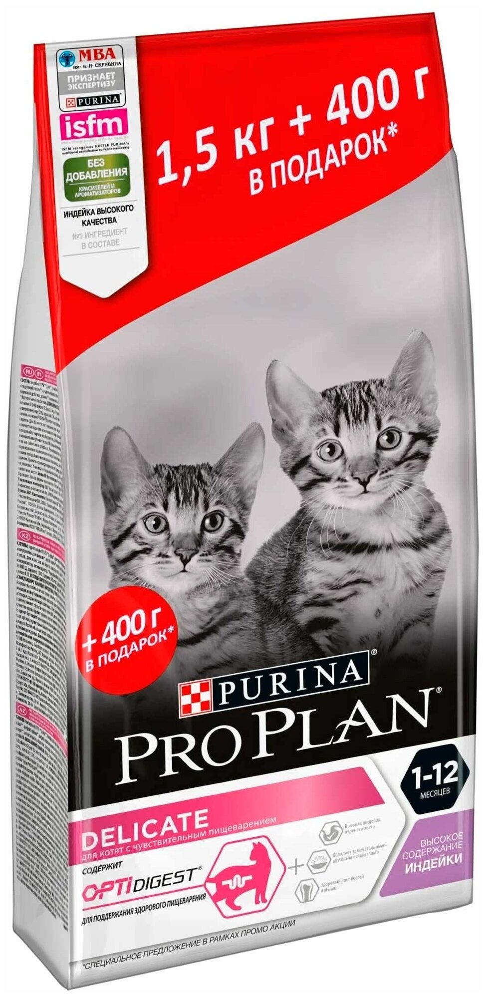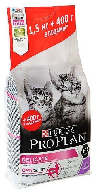Корм PRO PLAN содержит особую разработанную с участием ученых комбинацию ингредиентов для поддержания здоровья котят в течение продолжительного времени. PRO PLAN® ДЛЯ КОТЯТ –корм с высоким содержанием белка, сочетающий все необходимые питательные вещества, включая витамины С и Д3, а также омега‐3 жирную кислоту. Легко усвояемый корм для котят с чувствительным пищеварением. OPTIDIGEST* ‐ здоровое пищеварение. Доказано, что формула OPTIDIGEST* укрепляет здоровье пищеварительной системы, благодаря пребиотикам. Помогает улучшать пищевую переносимость благодаря ограниченному количеству источников белка. Обладает замечательными вкусовыми свойствами и придется по вкусу даже самым капризным котятам. Поддерживает здоровый рост костей и мускулатуры. Помогает поддерживать здоровое развитие головного мозга и зрения. Легко усвояемый корм для котят с чувствительным пищеварением