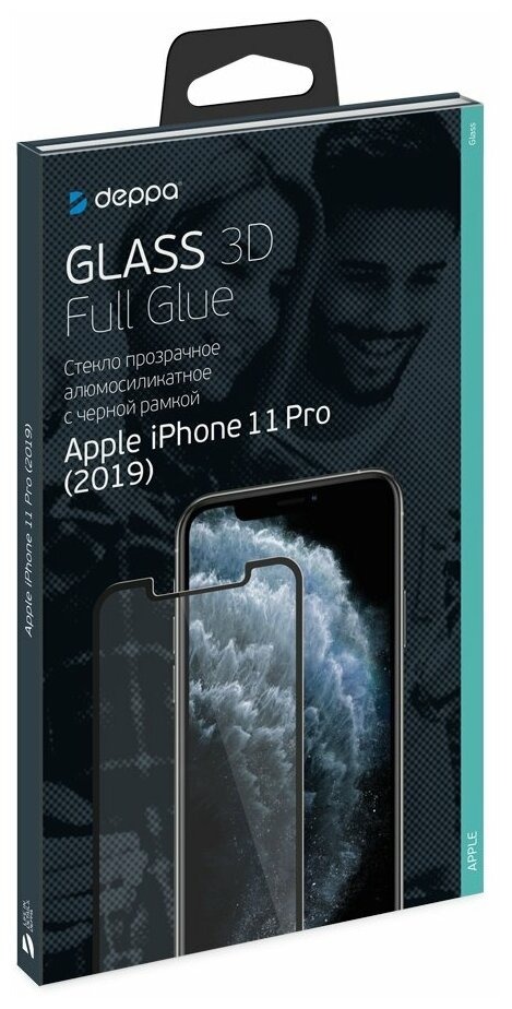 Защитное стекло Deppa 3D Full Glue 0.3 мм (с черной рамкой) для смартфона Apple iPhone 11 Pro Clear Прозрачный 62585