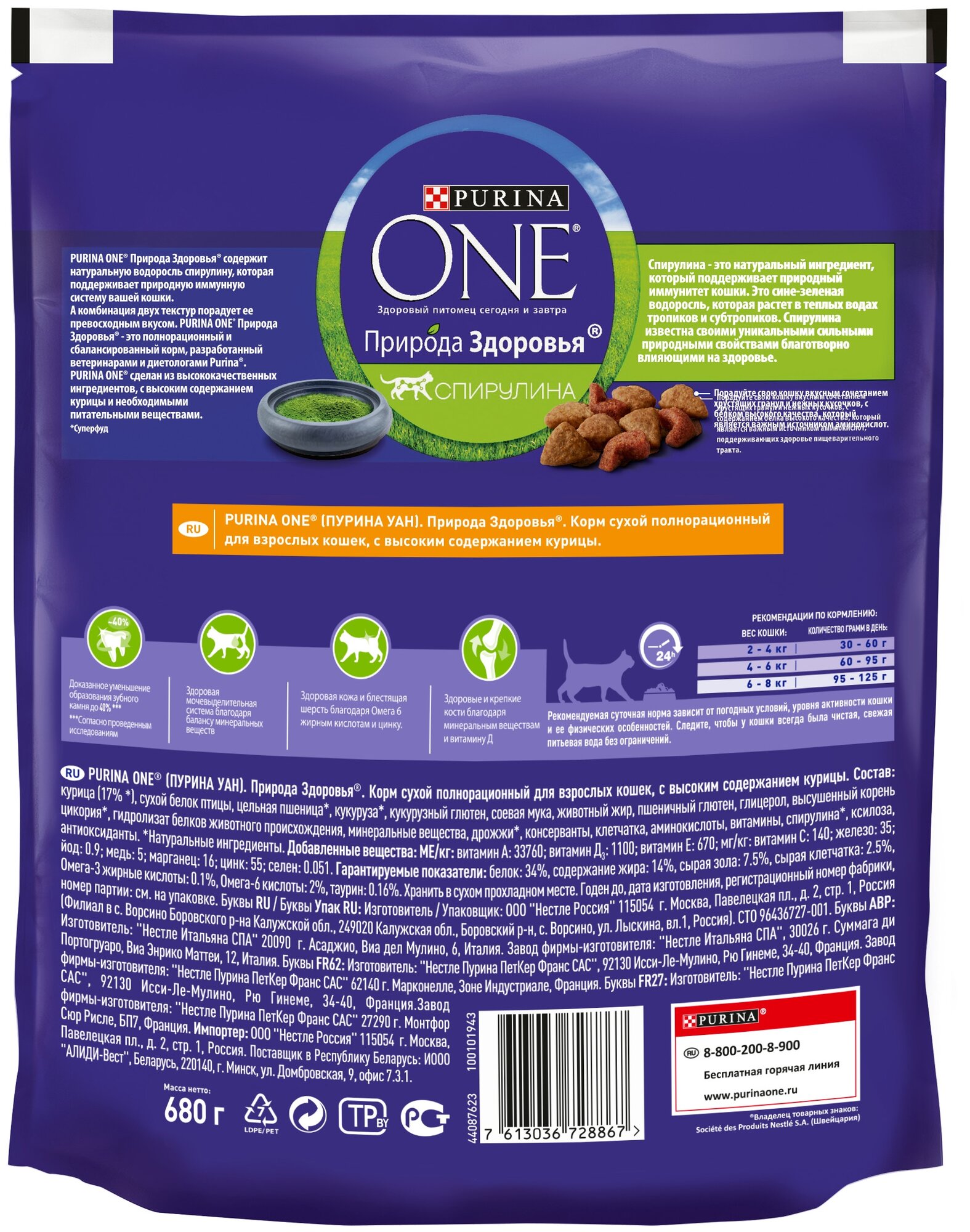 Сухой корм Пурина Уан для взрослых кошек Курица - Purina One содержит натуральную водоросль спирулину, которая поддерживает природную иммунную систему вашей кошки. А комбинация двух текстур порадует ее превосходным вкусом. Purina One сделан из высококачественных ингредиентов с высоким содержанием курицы и необходимыми питательными веществами.