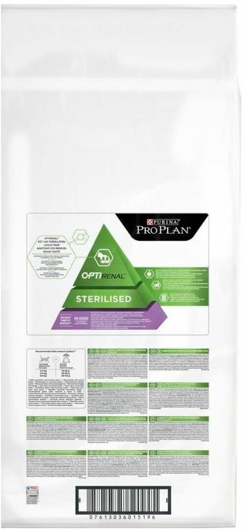 Полноценный сбалансированный рацион на основе мяса индейки для поддержания здоровья кастрированных котов и стерилизованных кошек. Ключевые особенности: Сочетает все основные питательные вещества, включая витамины A, C и E, в богатой белками, нежирной рецептуре, которая также помогает обеспечить сбалансированный уровень pH мочи; Имеет высокое содержание белков – 41 %, низкое содержание углеводов, а также содержит клетчатку.Хрустящие гранулы сокращают отложение зубного налета и зубного камня благодаря механическому воздействию;Поддержка здоровой иммунной системы;Поддержка пищевой переносимости корма благодаря отобранным источникам белка; Замечательные вкусовые свойства, которые придутся по душе даже самому взыскательному четвероногому гурману; Оптимальное питание для поддержания здоровья кастрированных котов и стерилизованных кошек; В состав корма входит высокое содержание мяса индейки, а также легко усваиваемые яйца и рис для облегчения пищеварения кошек. Корм PRO PLAN Sterilised с мясом индейки в качестве основного ингредиента – это полнорационное сбалансированное питание с высокими вкусовыми характеристиками, обеспечивающее взрослую кошку всеми необходимыми питательными веществами, включая витамины и минеральные вещества. Purina PRO PLAN содержит особую, разработанную с участием ученых, комбинацию ингредиентов для поддержания здоровья кошек в течение продолжительного времени. состав:Индейка – 20 %; сухой белок птицы, кукурузный глютен, пшеничный глютен, кукуруза, волокна пшеницы, клетчатка, животный жир, яичный порошок, минеральные вещества, рыбий жир, аминокислоты, вкусоароматическая кормовая добавка, дрожжи, консерванты, витамины. анализ состава:Белок – 41 %; Жир – 12 % ; Сырая зола – 7,5 %; Сырая клетчатка – 4,0 % . Добавки (на 1 кг): Витамин A - 34 000 МЕ, витамин Д3 - 1 100 МЕ, витамин E – 670 МЕ, витамин C – 140 мг, железо – 76 мг, йод – 1,9 мг, медь – 12 мг, марганец – 36 мг, цинк – 120 мг, селен - 0,11 мг. Рекомендации по кормлению: см. упаковку.Рекомендации по кормлению, позволяющие поддерживать идеальную форму, могут варьироваться в зависимости от возраста животного, его активности и условий окружающей среды. Следите за весом Вашей кошки и корректируйте количество даваемого корма. Следите, чтобы у Вашей кошки всегда была чистая свежая питьевая вода. Для здоровья Вашей кошки регулярно консультируйтесь с ветеринарным врачом.