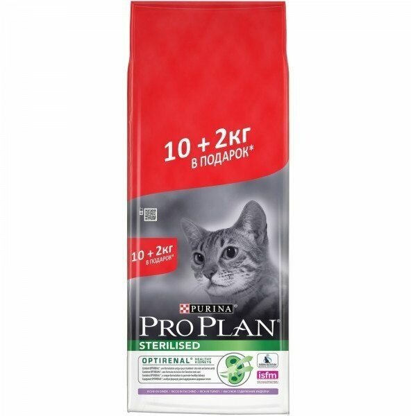 Сухой корм ProPlan для стерилизованных кошек и кастрированных котов индейка 10кг+2кг Purina ProPlan (12353661)