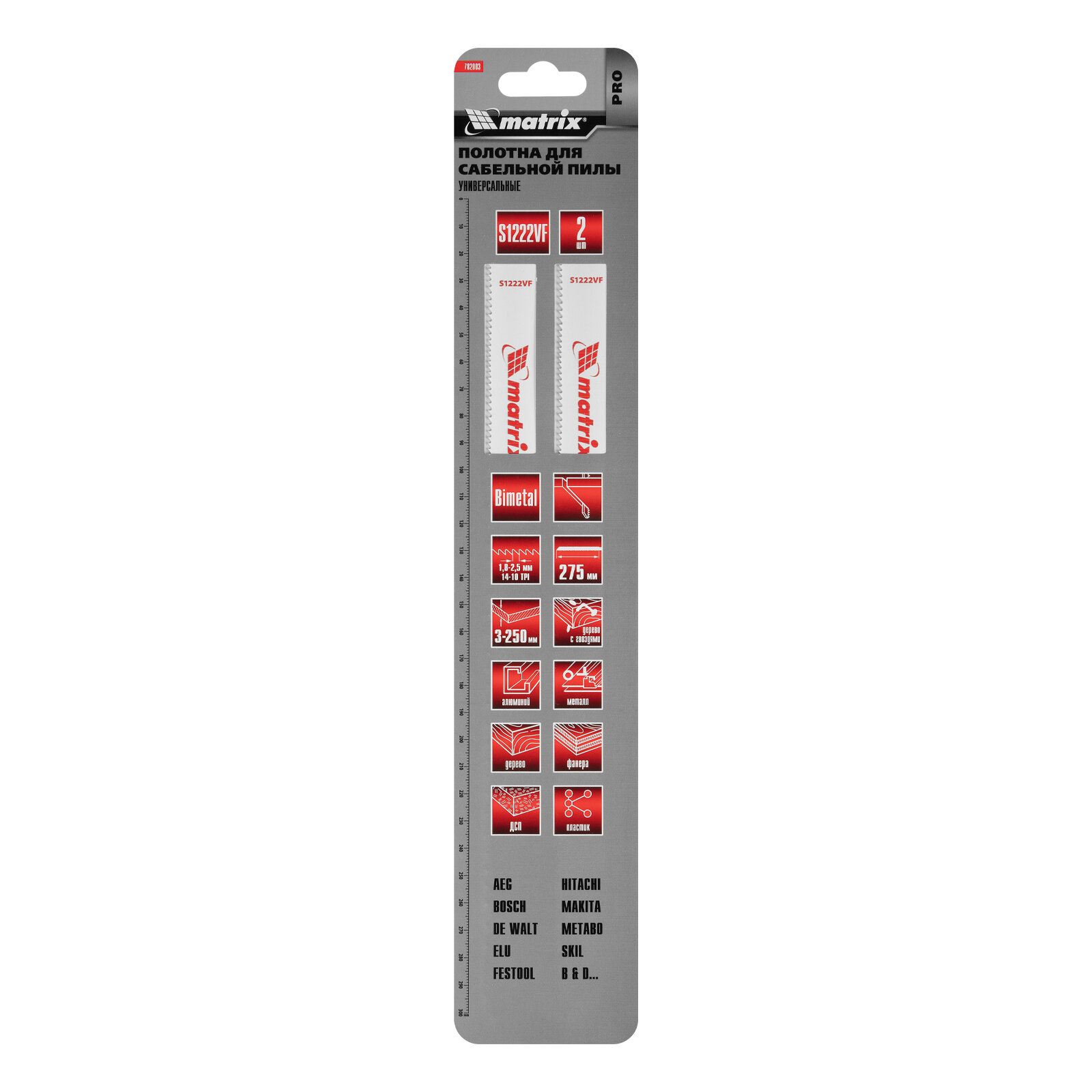 Полотна универсальные для сабельной пилы S1222VF,275/1,8-2,5 мм, Bimetal, 2шт., PRO // Matrix