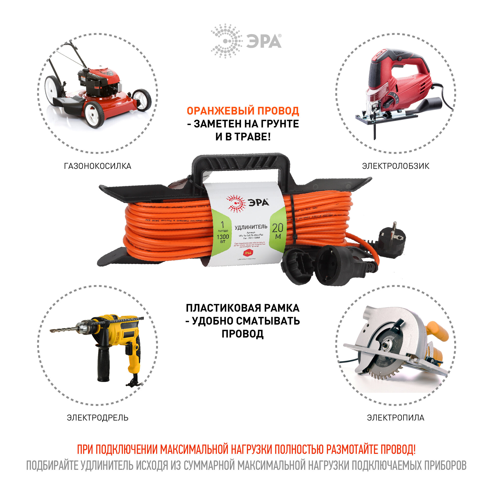 Удлинитель силовой ЭРА, используется для работы на строительных площадках или дачных участках, предназначен для присоединения бытовых электрических приборов к электрической сети переменного тока. Удобен при работе с приборами находящимися удаленно от стационарной розетки. Питающий провод армирован не разборной литой вилкой с противоизломным элементом, изделие защищено от попадания случайных брызг и капель воды, уровень защиты IP44. Изделие сертифицировано. ТР ТС 004/2011 "О безопасности низковольтного оборудования".