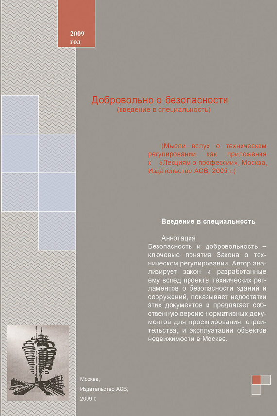 Безопасность и добровольность - ключевые понятия Закона в техническом регулировании. Автор анализирует закон и разработанные ему вслед проекты технических регламентов о безопасности зданий и сооружений, показывает недостатки этих документов и предлагает собственную версию нормативных документов для проэктирования, строительства и эксплуатации объектов недвижимости в Москве.