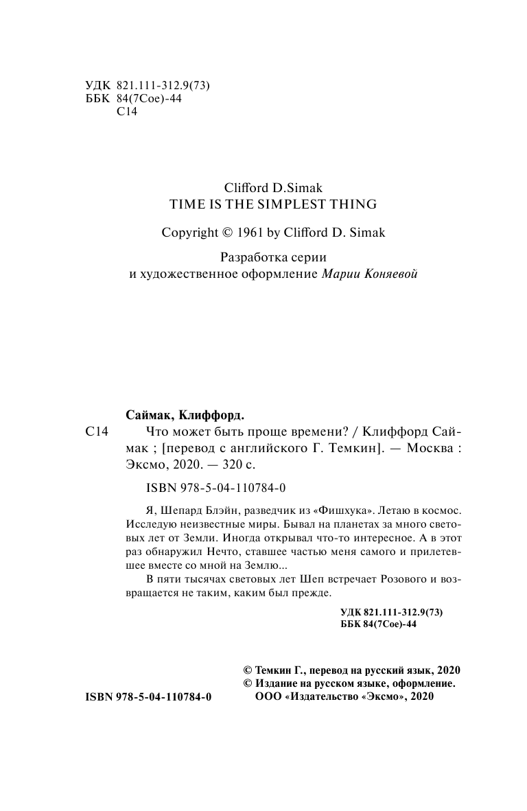Что может быть проще времени? (Клиффорд Саймак); Эксмо, Редакция 1, 2020