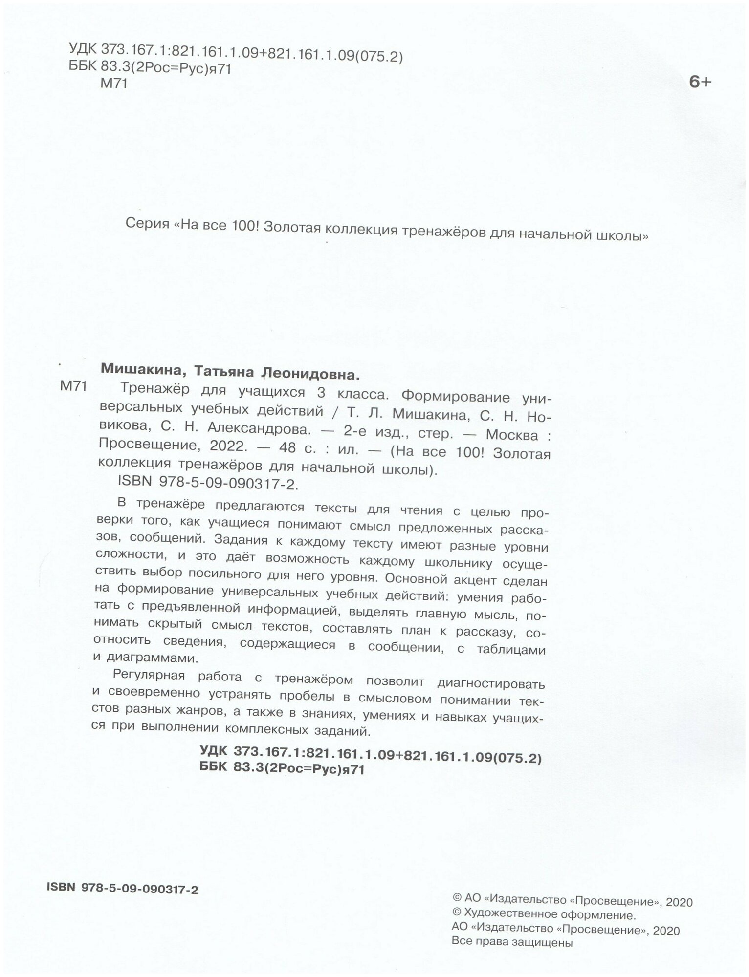 Мишакина. Тренажер для учащихся 3 классов. Формирование универсальных учебных действий. (Мишакина Татьяна; Александрова Светлана; Новикова Светлана); БИНОМ. Лаборатория знаний, 2017