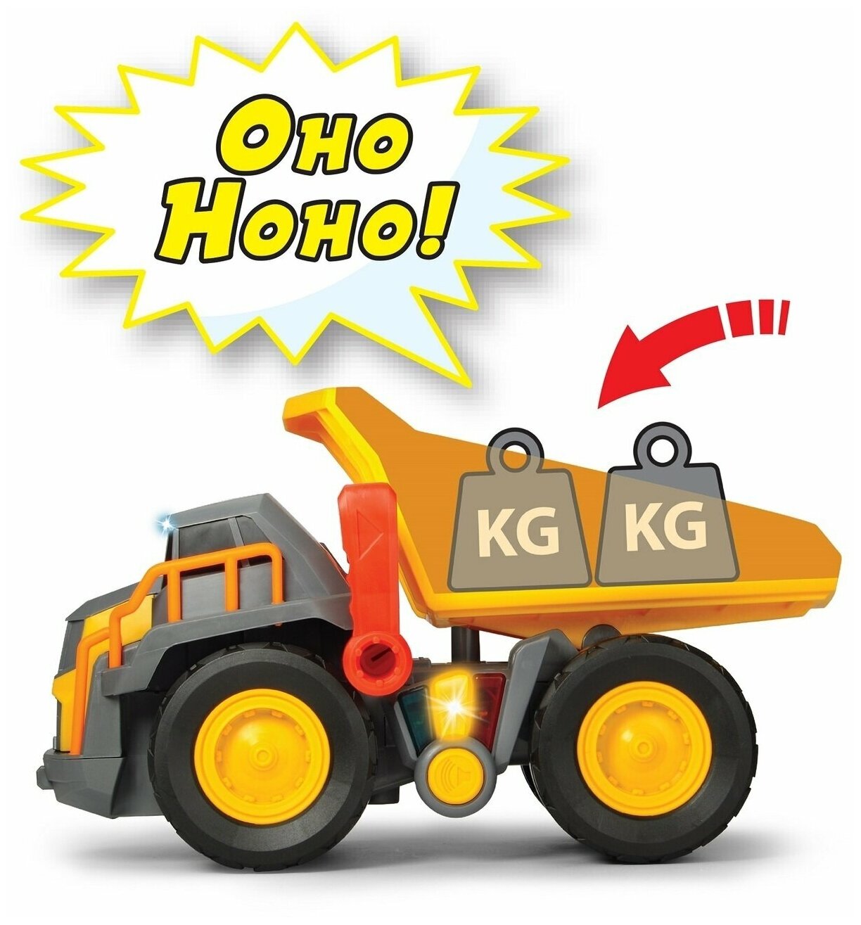 Яркая машинка в виде игрушечного самосвала, представленная компанией Dickie Toys, никогда не будет стоять без дела как дома, так и на улице.