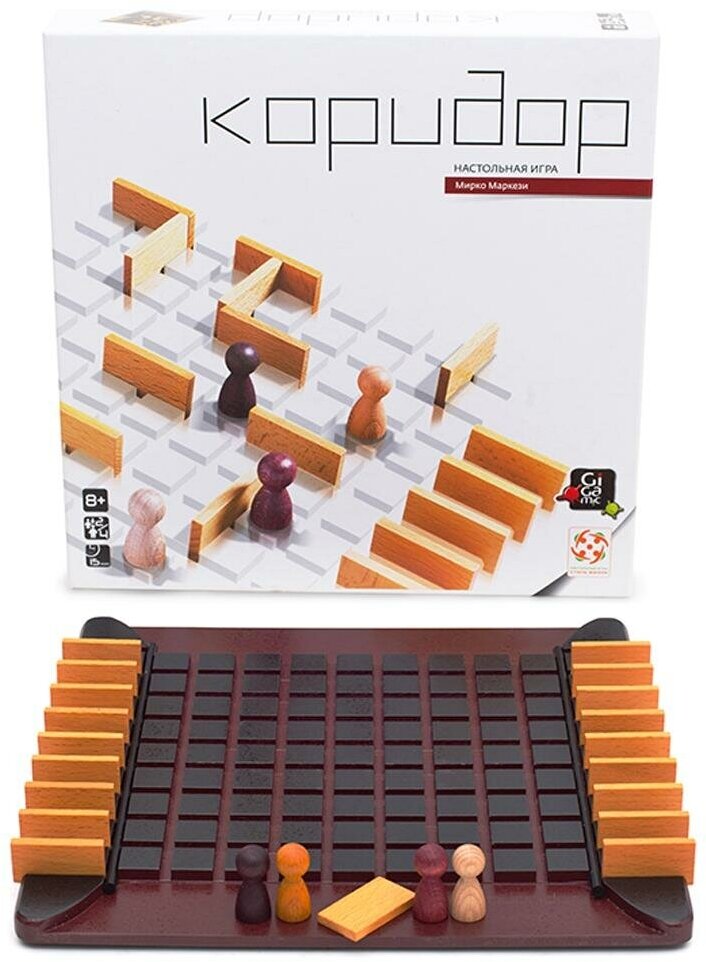 Да ещё и вчетвером можно играть. Почему Коридор немного похож на классические игры, вроде шашек или нардов? Потому что каждый игрок хочет добраться своей фишкой до «вражеской» стороны поля, а противник пытается его не пустить. Только способ здесь — строить перегородки. Это интересная, эстетически приятная и для кого-то медитативная игра, с яркой конкуренцией и приличной долей азарта.
