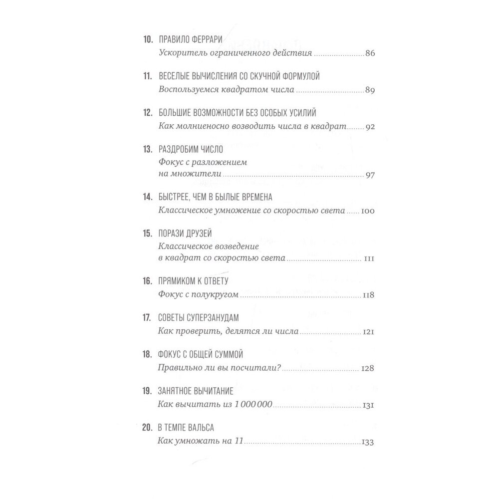 Действительно полезная книга, которая может сильно упростить вам жизнь и сделать менее зависимым от гаджетов. С ней я снова вспомнил, каково это что-то считать и складывать в уме, а не на айфоне. В ней есть как классические методы "хитрого" сложения, так и новые, которые только только появились. На самом деле, очень весело пытаться проделать все описанные методы вычислений в уме, можно даже собраться семьей или с друзьями (как только закончится карантин), и попытаться всем вместе. Экивоков, конечно, не заменит, но приятные эмоции точно подарит)