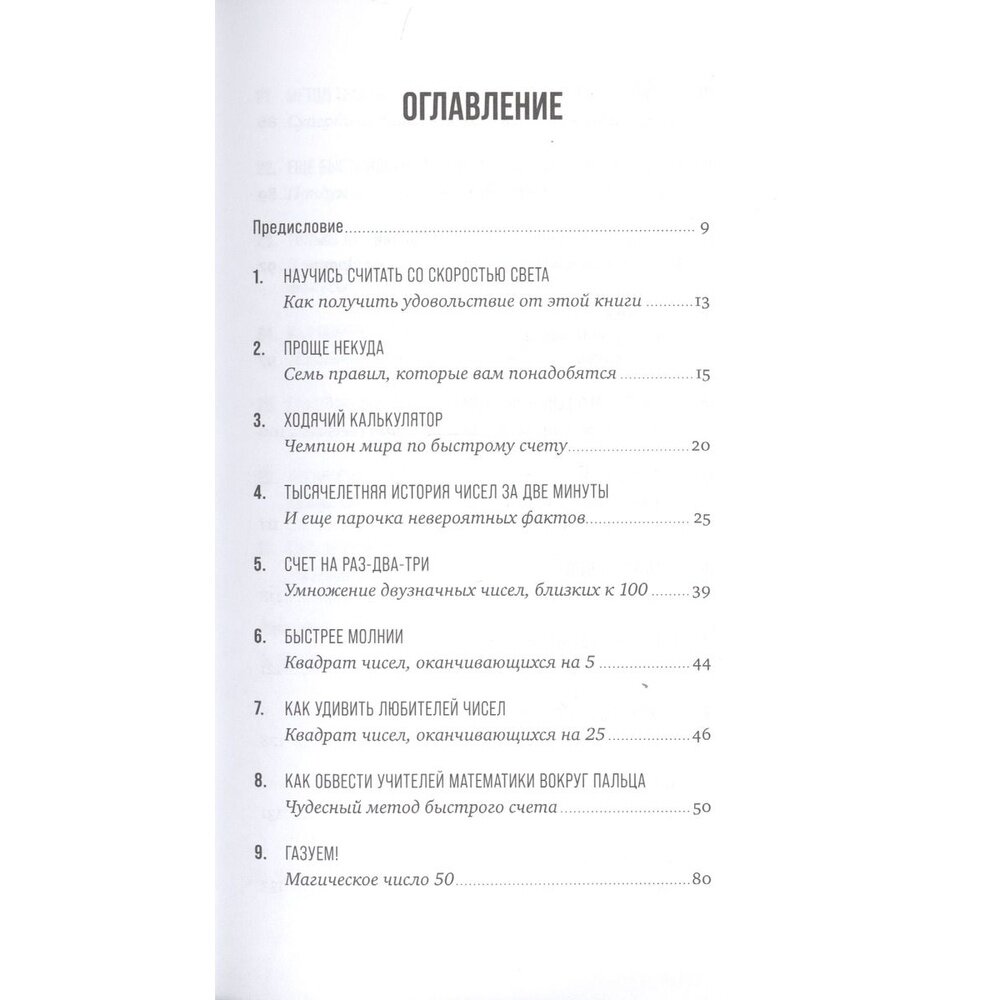 Забудьте о калькуляторе, эта книга научит вас скоростным вычислениям в уме или с карандашом. Чтобы считать быстрее, достаточно думать немного иначе, уверен ее автор Ингве Фогт - норвежский журналист научного журнала Apollon и фанат математики. Вы узнаете о простых и нескучных методах быстрого счета, для которых понадобится лишь знание базовых арифметических правил. Метод Трахтенберга, китайский способ счета с помощью черточек и множество других математических техник помогут вам без труда складывать и вычитать, умножать и делить, извлекать квадратный корень и возводить в квадрат большие числа. Эта книга для любителей чисел всех возрастов, а также для тех, кто хочет овладеть супербыстрым счетом - для учебы, работы или удобства в повседневной жизни.