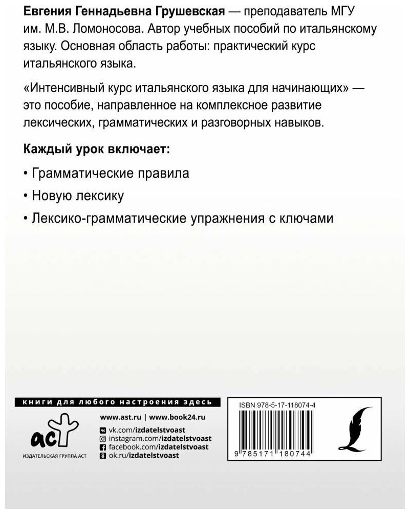 Интенсивный курс итальянского языка для начинающих (Евгения Грушевская); АСТ, Lingua, 2020