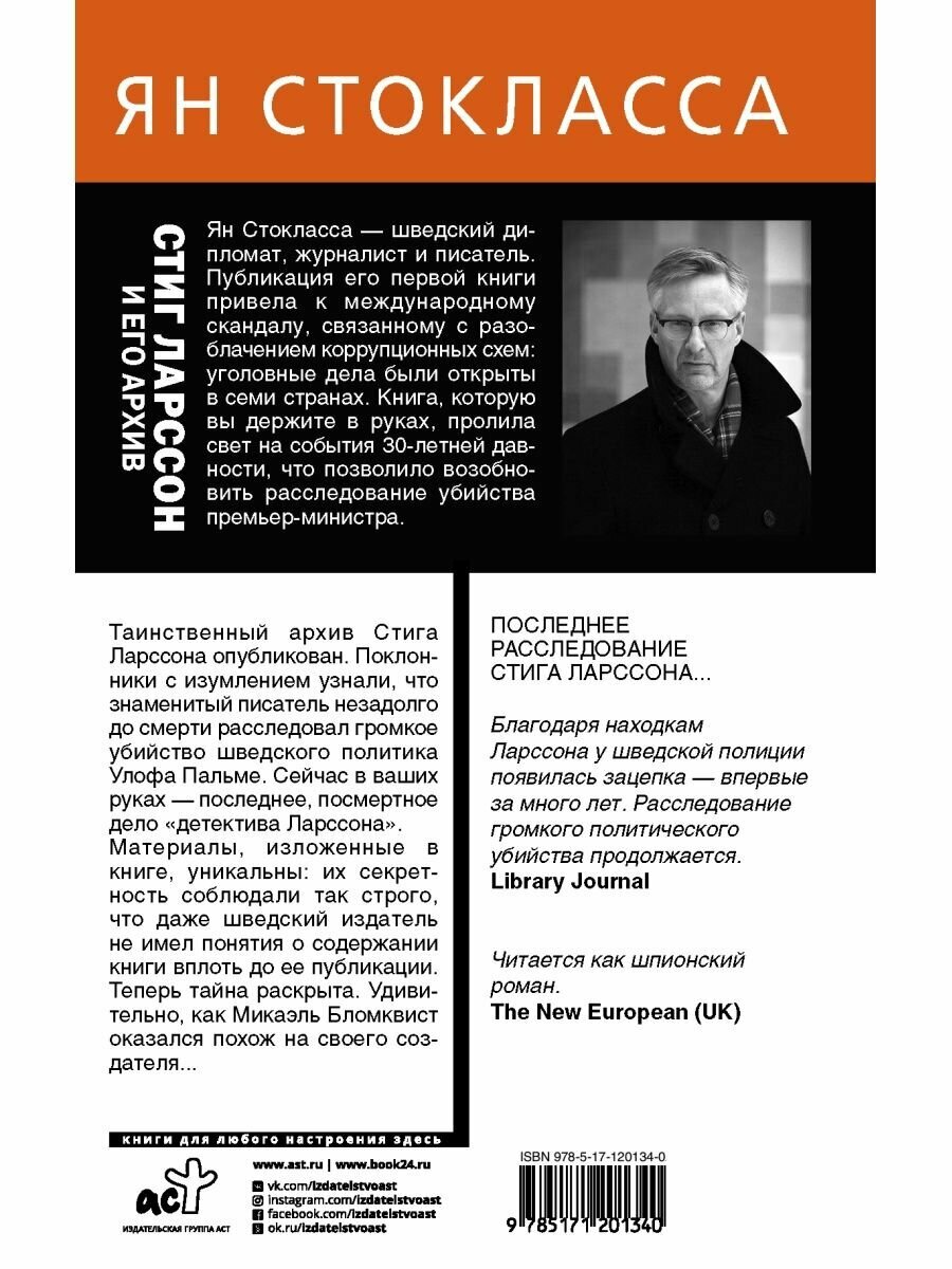 Книга шведского журналиста Яна Стокласса проливает свет на тайную жизнь одного из самых продаваемых романистов современности – Стига Ларссона. Известно, что автор "Девушки с татуировкой дракона" был не только известным писателем и журналистом, но активным общественным деятелем. Однако до недавнего времени не было известно, что вплоть до своей смерти Стиг Ларссон вел собственное расследование убийства шведского премьер-министра Улофа Пальме. Доступ к 20 коробкам с материалами дела получил автор этой книги, журналист и режиссер Ян Стокласса. Их содержимое было засекречено даже для издателей вплоть до выхода книги на шведском языке. Теперь же и русскоязычные поклонники Стига Ларссона могут поразиться параллелями между Микаэлем Бломквистом и его создателем.