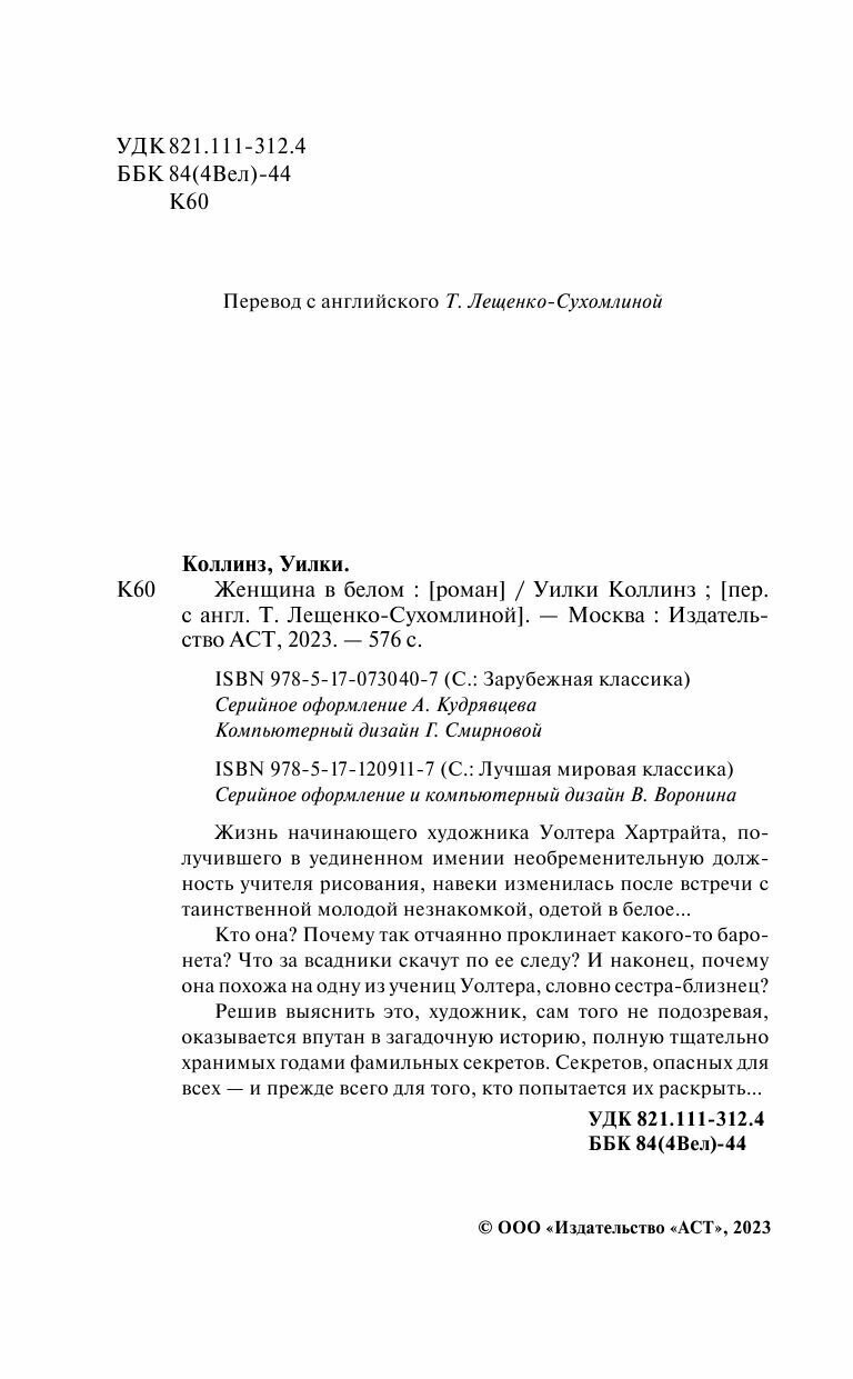 Книга: Женщина в белом (Уильям Уилки Коллинз); ООО "Издательство Астрель", 2023