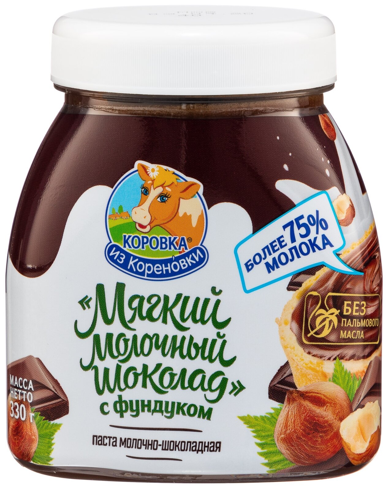 Паста Коровка из Кореновки Мягкий молочный шоколад с фундуком 330г