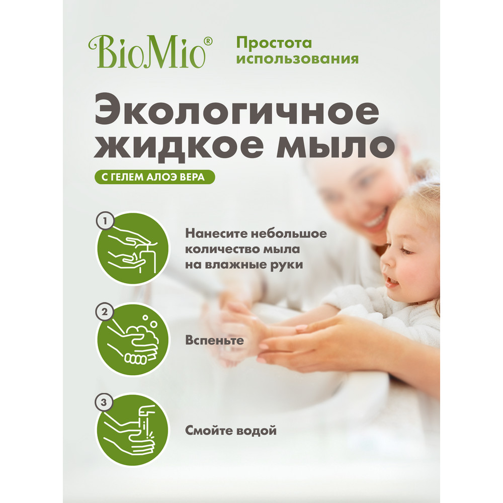 Экологичное жидкое мыло BIO-SOAP мягко и деликатно очищает кожу, идеально подходит для всей семьи. Специальная формула с экстрактом проионовокислых бактерий поддерживает нормальную микробиоту кожи рук, а гель алоэ вера увлажняет кожу.