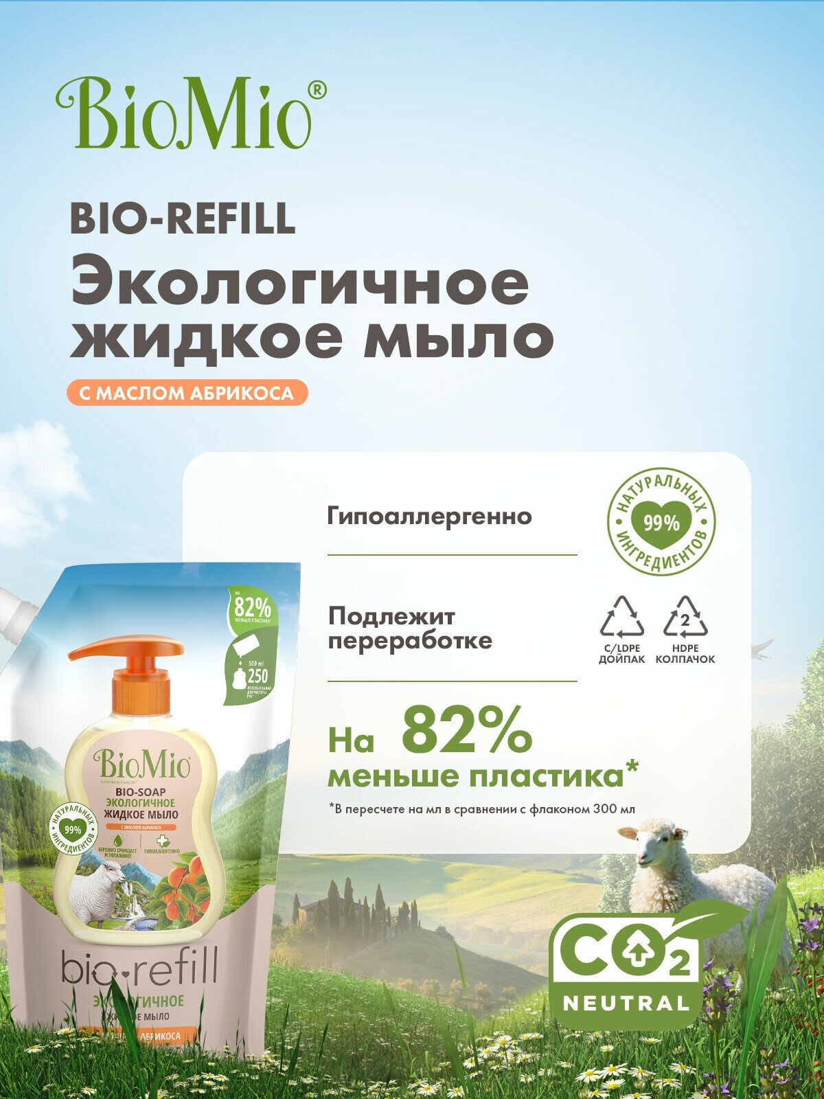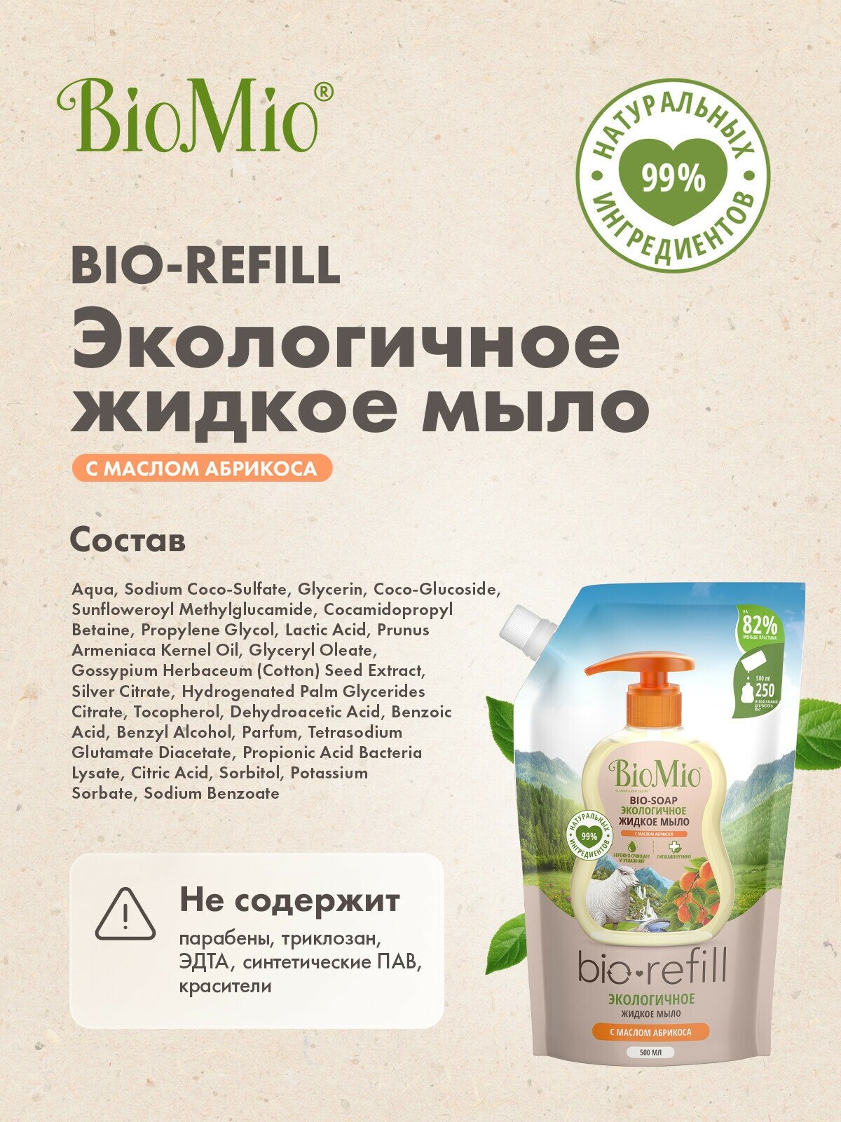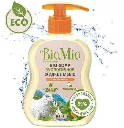 Антибактериальное гипоаллергенное жидкое мыло для рук и тела BioMio Bio-Soap с маслом абрикоса 300 мл 4011176