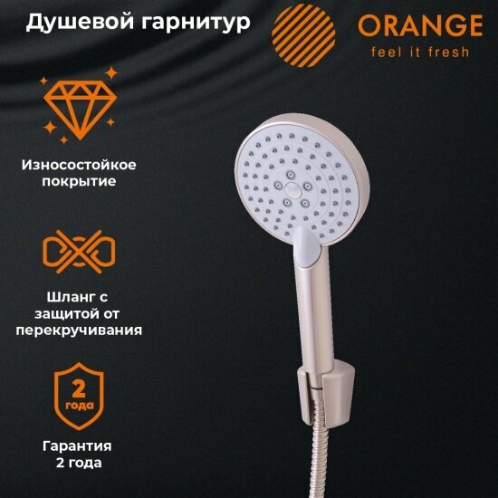 Душевой гарнитур Orange LM53NI выполнен в трендовом дизайне с четкими и изящными линиями в нежном цвете никель. Имеет долгий срок эксплуатации за счет качественных деталей, неприхотлив в уходе.