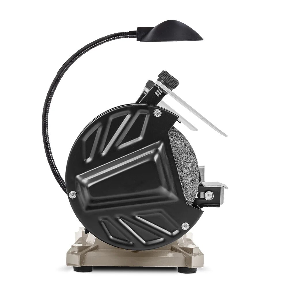 - Светодиодная подсветка обеспечивает хорошую видимость рабочей зоны, что улучшает качество заточки и повышает безопасность.