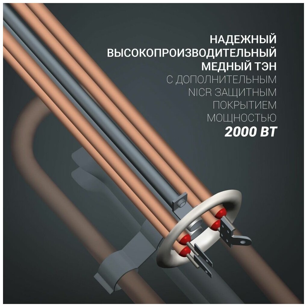| Прочие особенности и свойства | 3 режима нагрева 0.7 /1.3 /2.0 кВт, Максимальная температура воды 75 °C |