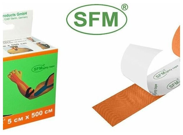 Лента кинезиологическая SFM-Plaster на хлопковой основе в рулоне 5х500см цвет оранжевый SFM Hospital Products (572903) (размер: 5 см x 5 м)