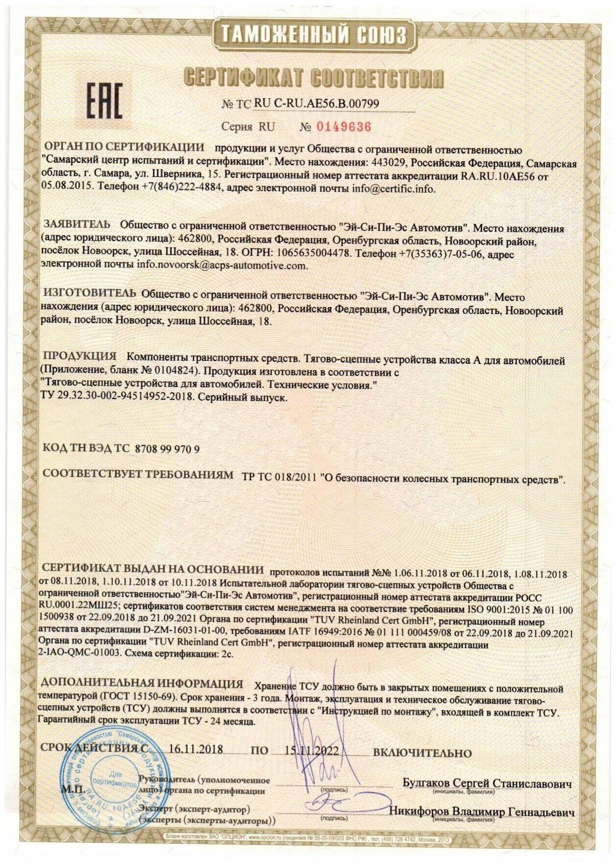 | Состав комплекта | балка ТСУ, шар (+ колпачок), монтажный комплект |