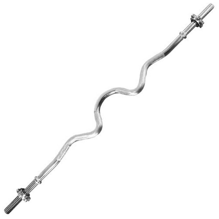 Гриф для штанги EZ, изогнутый для анатомической постановки хвата при выполнении упражнений на бицепсы и трицепсы и снижения нагрузки на запястья, Z-образный, 120см.Материал: хромированная стальДиаметр 25мм.Замок: гайка 25 мм с резиновой прокладкойВес грифа: 5,9кг.Ширина хвата 82см.Ширина резьбы для дисков (с каждой стороны): 18см.Максимальная нагрузка: до 120кг.