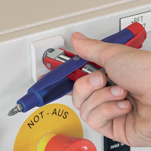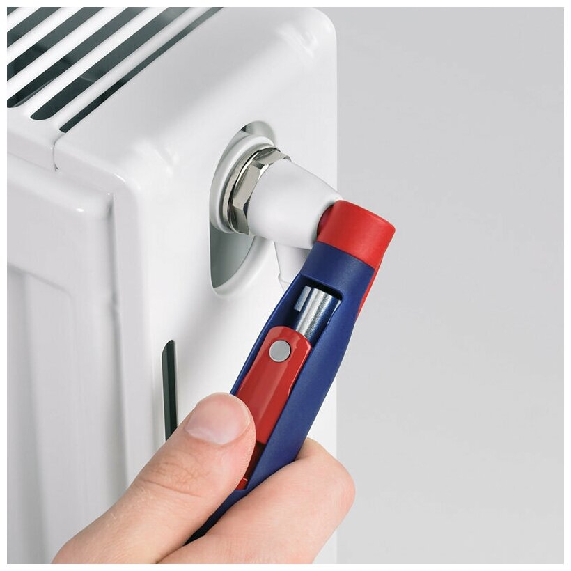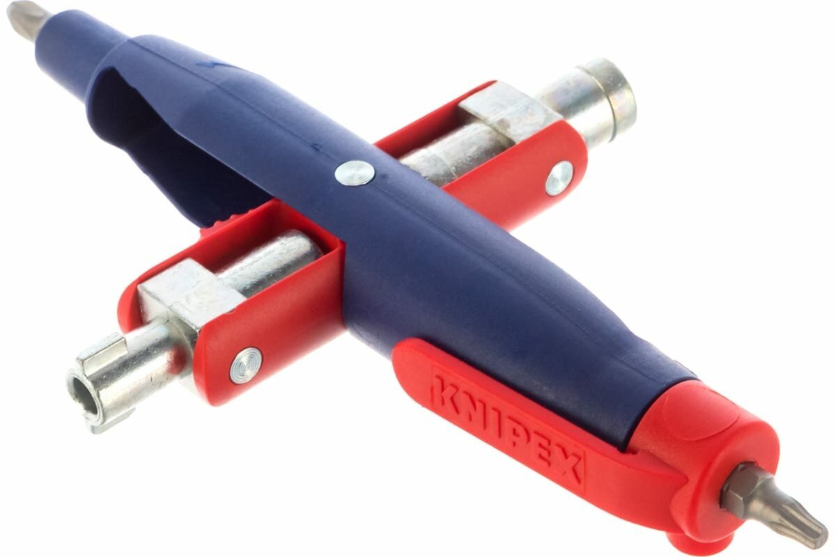 Ключ штифтовый для стандартных шкафов, битодержатель 1/4", биты: PH, SL7x1.2, TX20/25, 145 мм, квадрат, трёхгранник, круг с двумя бородками Ключ для электрошкафов с битой и переходником KNIPEX активно используется для наладки электрошкафов, систем газового и электроснабжения и т. д. Такой ключ является незаменимым инструментом для рабочих строительных профессий. Данная модель очень удобна в использовании, практична и долговечна. С его помощью можно легко работать с различными техническими установками, например, с запорными клапанами, кондиционерами и вентиляционными установками, а также с сетевыми пультами управления и пр. Показать все Технические характеристики ключа Knipex Общая длина, мм 145 Количество рабочих профилей 4 Вес нетто, кг 0.152 Материал цинковое литье Преимущества ключа Knipex Немецкое качество; Универсальное крепление 1/4" (постоянный магнит из неодима для фиксации); Возможность хранения второго бита; Надежность; Износоустойчивость. 4 разных профиля в одном; Малый вес 152 гр; дополнительное крепление для наконечников 1/4" в одном профиле ключа.