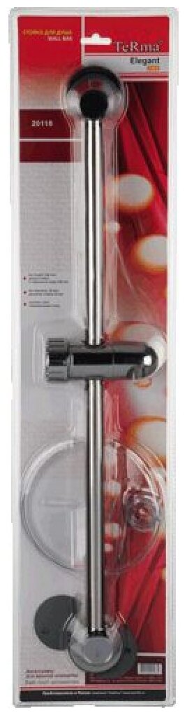 Стойка для душа Melodia della vita MKP20118BL применяется для крепления душевой лейки в ванной комнате, монтируется на стену. Представляет собой металлическую стойку из нержавеющей стали диаметром 19 мм с перемещающимся вертикально, по всей длине стойки, креплением для душевой лейки, длина стойки 600 мм. С помощью крепления также можно регулировать угол наклона лейки. Стойка для душа упакована в блистер, дополнительно комплектуется пластиковой мыльницей.