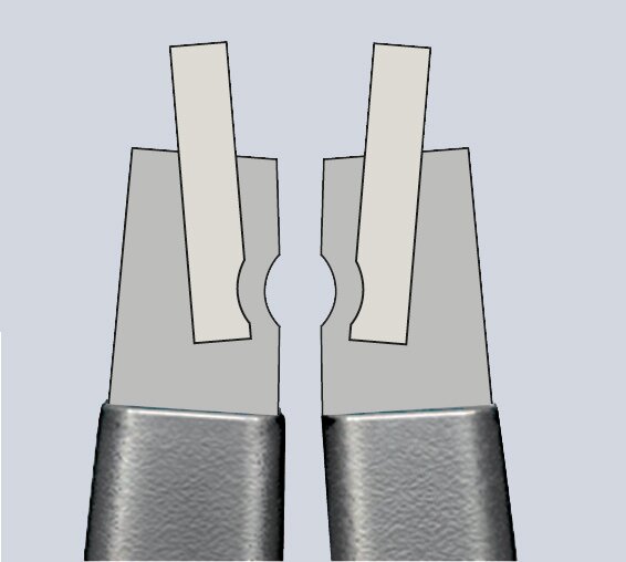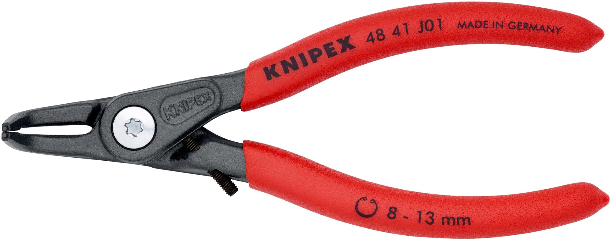 48 41 J01 Прецизионные щипцы для стопорных колец C высокой нагрузочной способностью в условиях длительного применения: срок службы дольше до 10 раз по сравнению с обточенными наконечниками. c запрессованными наконечниками для безопасной работы. винтовой шарнир: точный ход без люфта. ручки с покрытием из нескользящего пластика. с ограничением закрытия (регулируется с помощью упора). Регулировка с помощью винта с внутренним шестигранником. Идеальное решение для серийного производства, поскольку эффективно предотвращается растяжение колец. наконечники под углом 90°. с ограничением раскрытия наконечников для установки стопорных колец по стандарту DIN 472. регулируемый винтовой упор защищает стопорные кольца от чрезмерного раскрытия. - Диапазон диаметров отверстий: Ø 8 – 13mm - Наконечники (диаметр): Ø 0,9mm