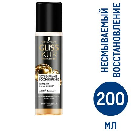 Gliss Kur Экстремальное Восстановление создан специально для интенсивного восстановления и защиты повреждённых волос, подходит для ежедневного применения, не требует смывания.