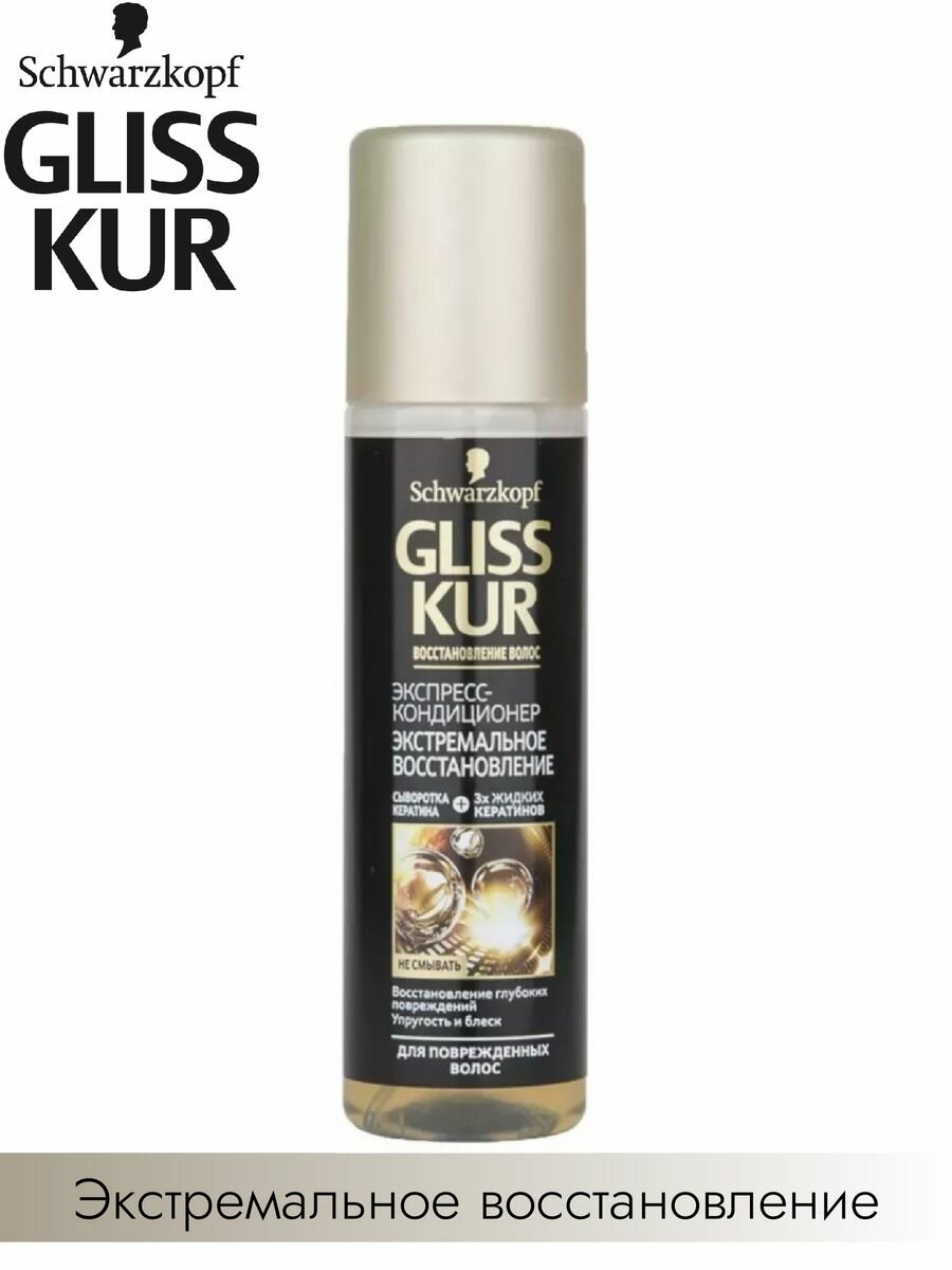 Экспресс-кондиционер для волос Gliss Kur Экстремальное Восстановление 200 мл — быстрое решение для мгновенного восстановления повреждённых волос без утяжеления и смывания.
