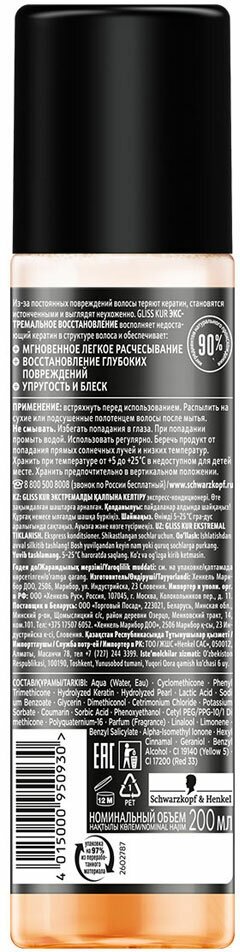Из-за постоянных повреждений волосы теряют кератин, становятся истонченными и выглядят не ухоженно. Gliss Kur Экстремальное восстановление восполняет недостающий кератин в структуре волоса и обеспечивает:- Лёгкое расчесывание. - Восстановление глубоких повреждений. - Упругость и блеск.