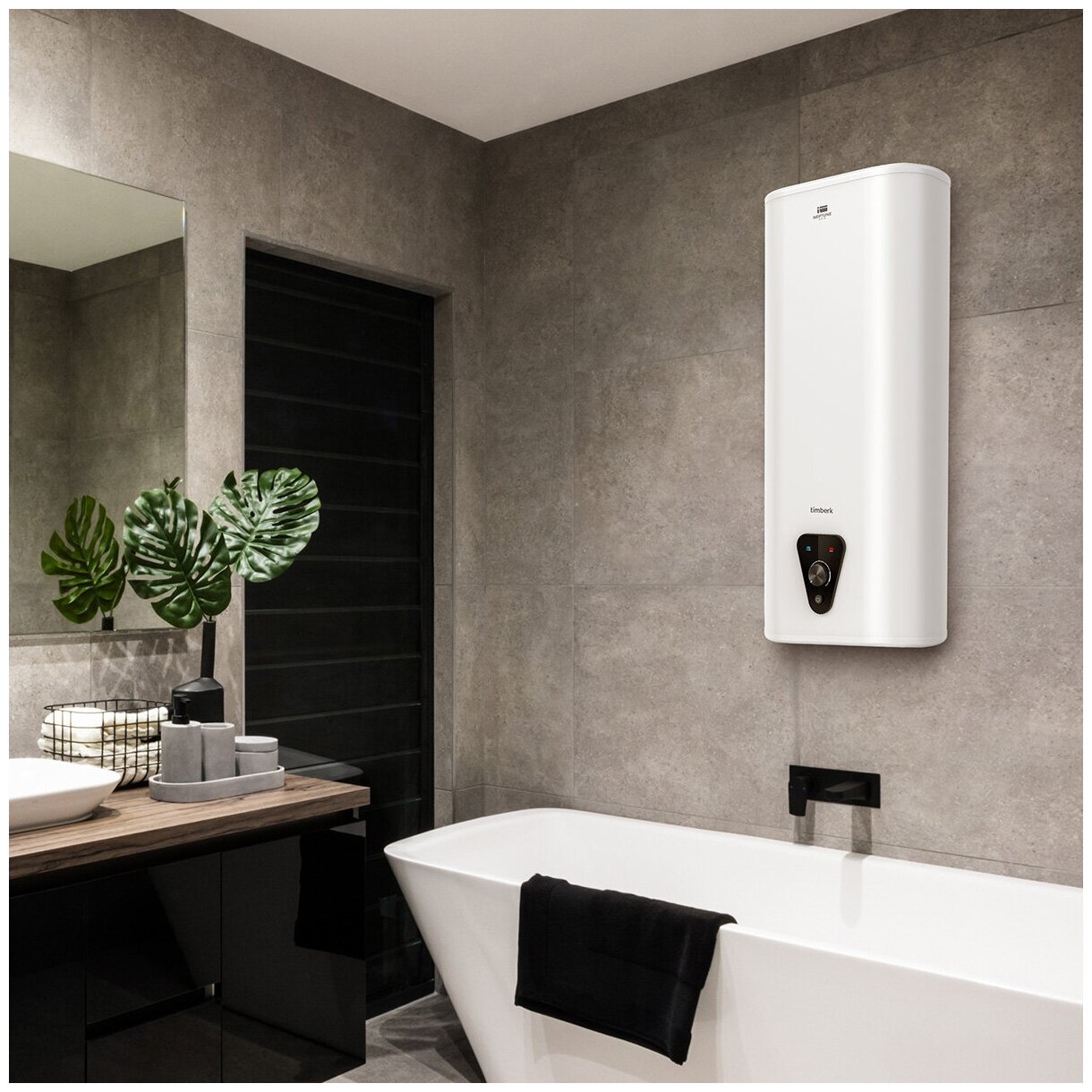 Накопительный водонагреватель Timberk (Тимберк) укомплектован двойным электрическим нагревателем сухой конструкции, который не подвержен образованию накипи. Устройство оперативно подогревает воду до заданной пользователем температуры и эффективно обеспечивает ее медленное остывание.