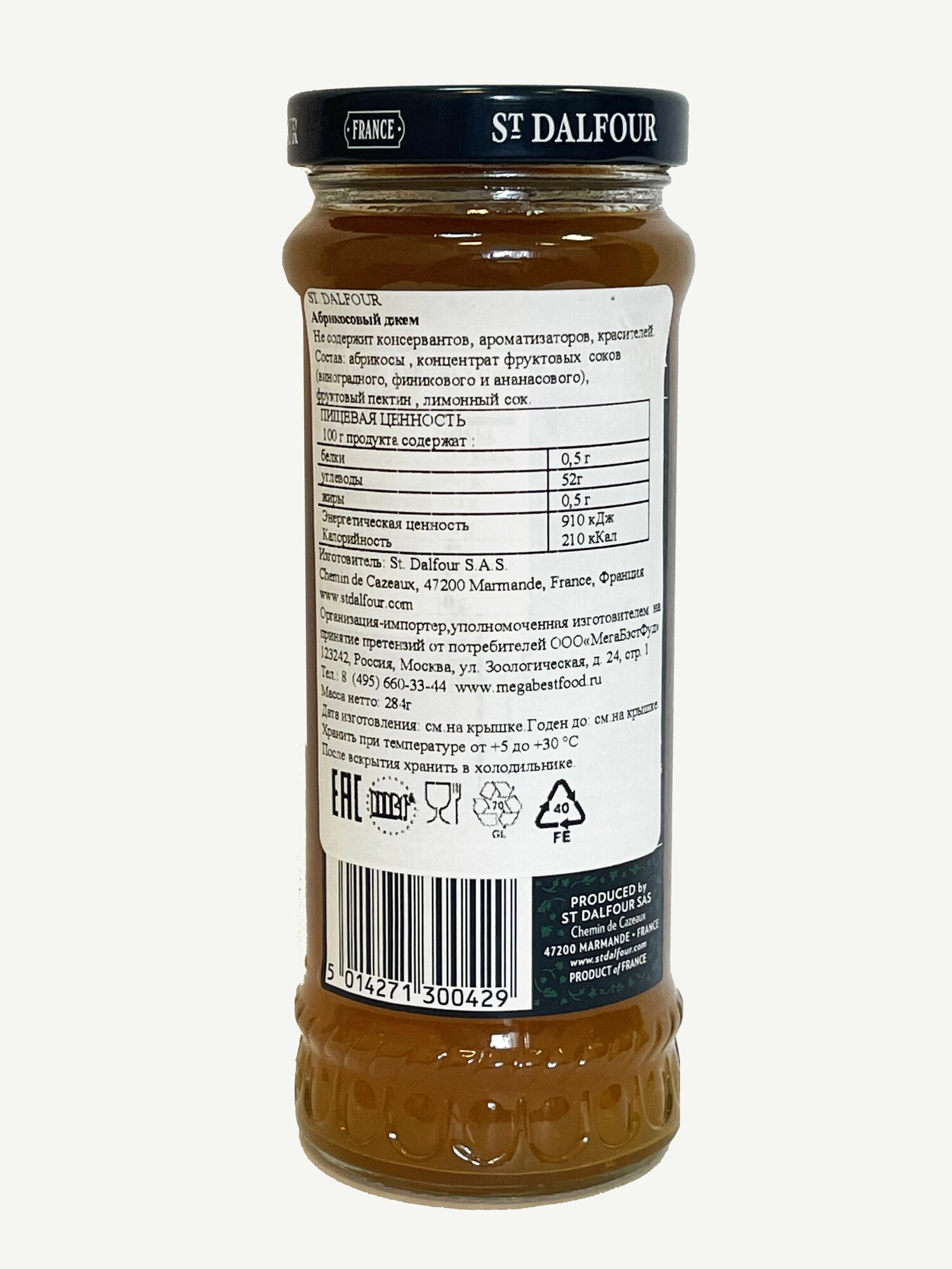 Джем St.Dalfour б/сахара абрикос 284 г Франция St. Dalfour
