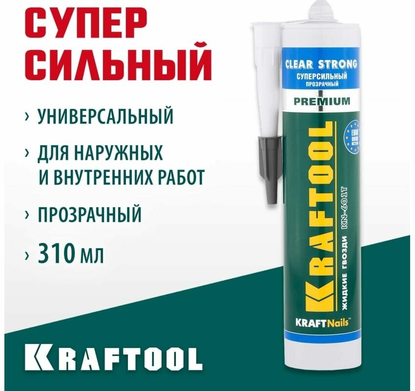 Монтажный клей KRAFTOOL - это универсальное решение для внутренних работ. Клей обладает высокой прочностью и влагостойкостью, что позволяет использовать его в различных условиях.