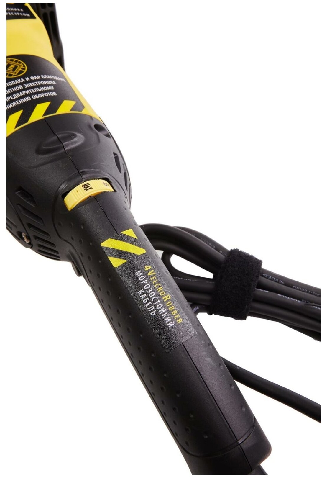 Легкий доступ к щеткам «QuickChange» служит для удобства их замены без разборки корпуса. Быстрый доступ к щеткам обеспечивает возможность самостоятельной их замены. «AdhesiveSupport» - опорная тарелка с посадкой полировальных насадок на липучку Velcro обеспечивают быструю смену рабочих элементов. Блокировка шпинделя обеспечивает быструю и легкую установку оснастки. Удлиненный морозостойкий, не спутывающийся резиновый кабель «4VelcroRubber», сохраняющий свою эластичность при низких температурах, обеспечивает рабочую зону диаметром до 8 метров. Система хранения с использованием ремня на «липучке» обеспечивает удобство фиксации и сохранение кабеля. Эргономичный корпус выполнен с применением нейлона, стойкого к ударам и низким температурам оснащен задней удлиненной рукояткой с резиновой противоскользящей вставкой.