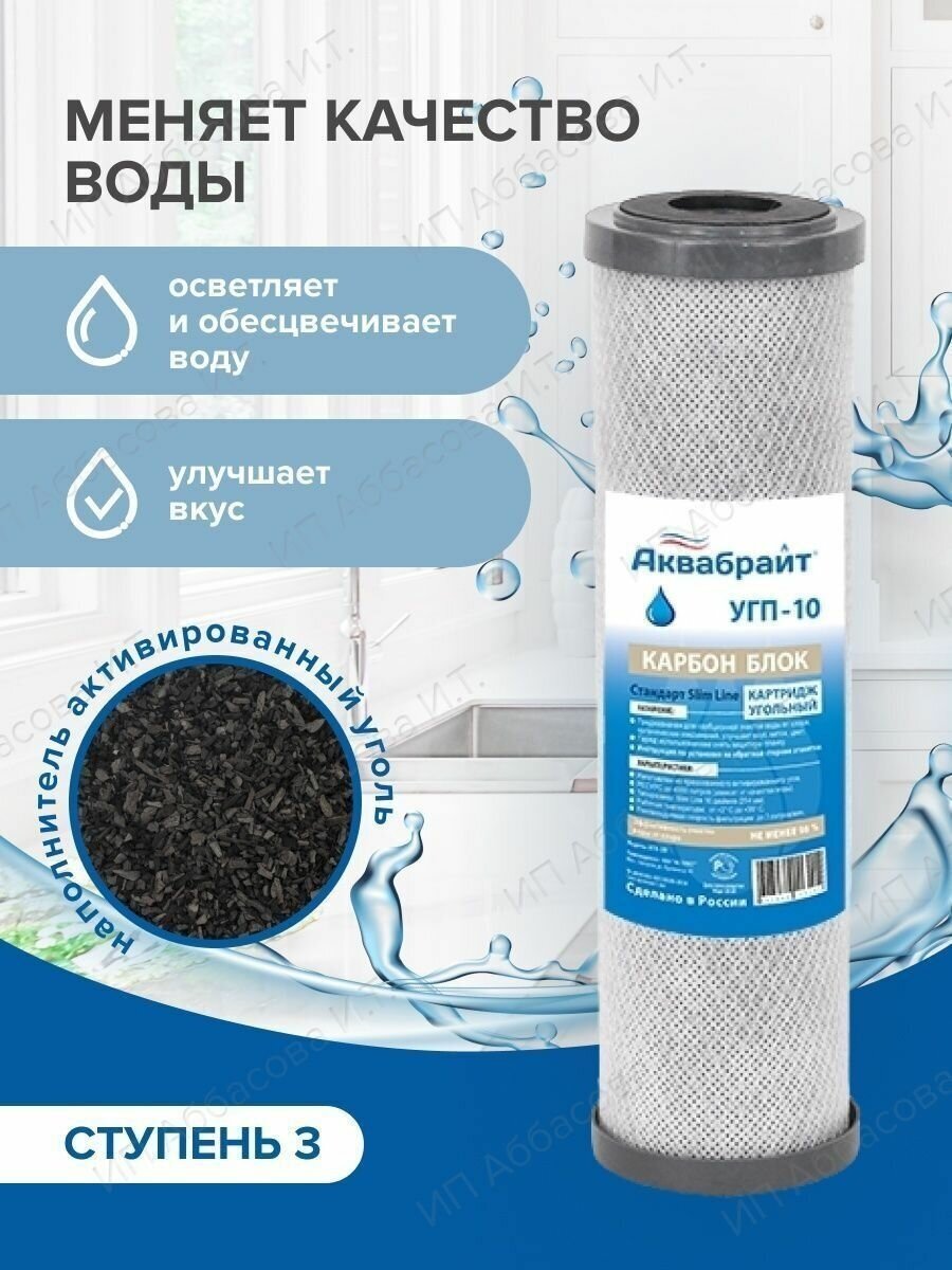 Комплект картриджей для очистки воды Аквабрайт СТАНДАРТ К-1 (ПП-5, УГП-10, УГА-10)