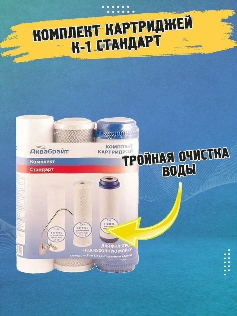 Сервис сравнения цен СкидкаГИД предлагает сравнить цены на товар «Комплект картриджей для очистки воды Аквабрайт СТАНДАРТ К-1 (ПП-5, УГП-10, УГА-10)»