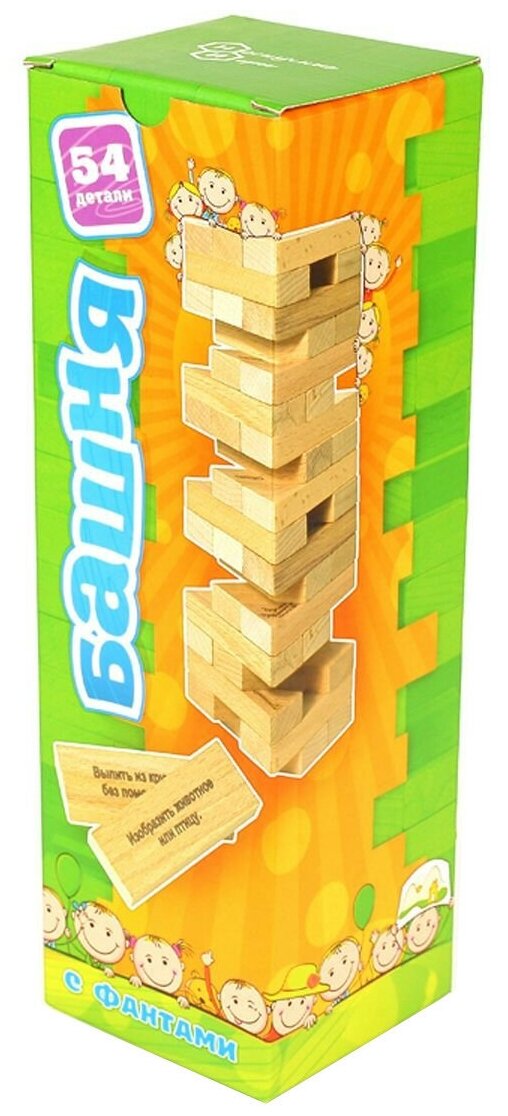 Игра состоит из деревянных брусков с заданиями различного характера. Сначала бруски складываются друг на друга в ровную башню. Игроки поочередно вытягивают брусья и выполняют задания: прочитать стихотворение, изобразить животное, спеть песню и пр. Бруски вытаскиваются так, чтобы башня не развалилась, после чего ставятся снова наверх. Выигрывает тот, кто выполнил все задания и был последним, не разрушившим строение.