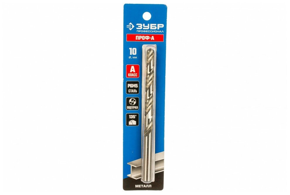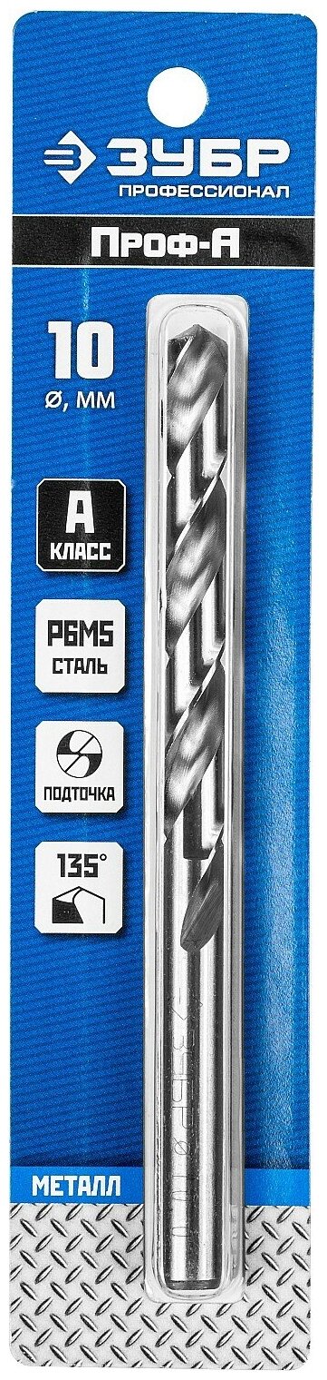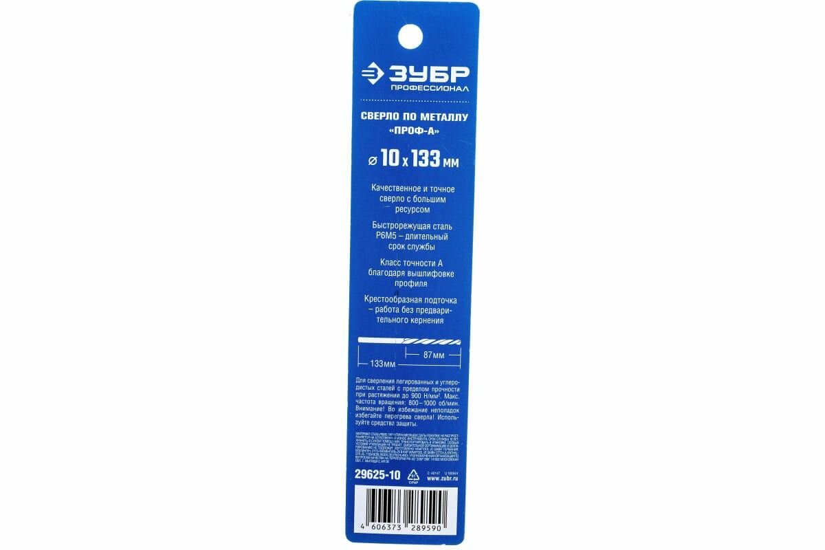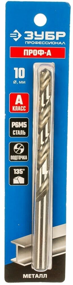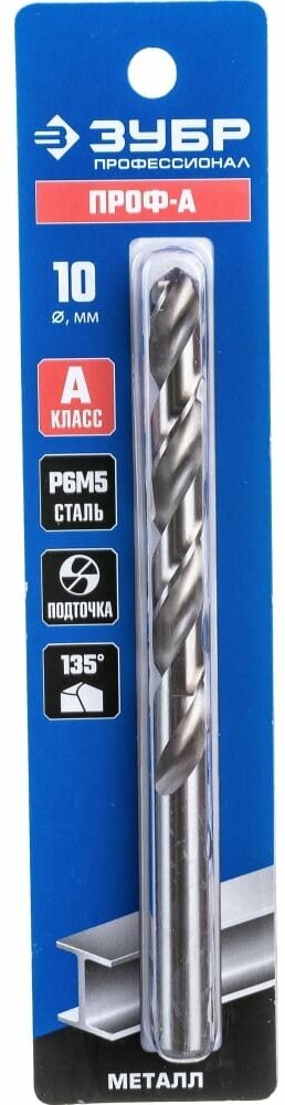 ЗУБР ПРОФ-А 10.2х133мм, Сверло по металлу, сталь Р6М5, класс А