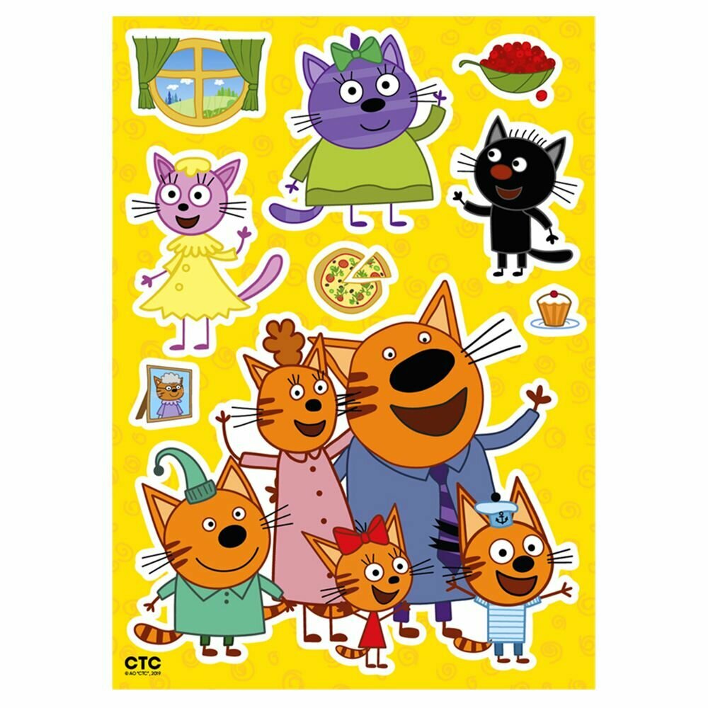**Наклейка «Три кота: семья котов»** недорого и быстро преобразит детскую комнату и поспособствует созданию хорошего настроения на целый день. Можно клеить на окрашенные стены, обои, пластиковые панели, плитку, стекло, акрил, металл. Выполнена на основе винила. Размер изображения 35х50 см, сделано в России. ### Особенности стикера - Может наклеиваться на стены, холодильник, мебель и другие поверхности. - Наклейка нетоксична, не выделяет вредных веществ. - Допускает переклеивание с места на место, с чем может справиться сам ребенок. - Выдерживает влажную уборку. - Не оставляет следов.