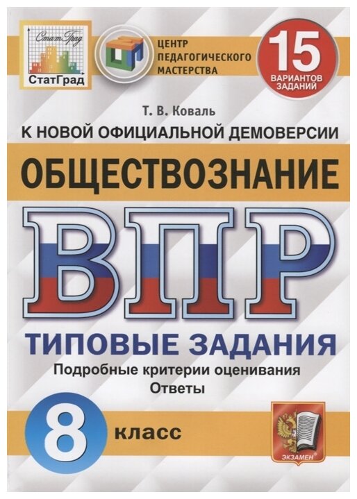 Обществознание 8 кл Типовые задания 15 вариантов заданий. Подробные критерии оценивания. Ответы. . (Коваль Татьяна Викторовна); Экзамен, 2021