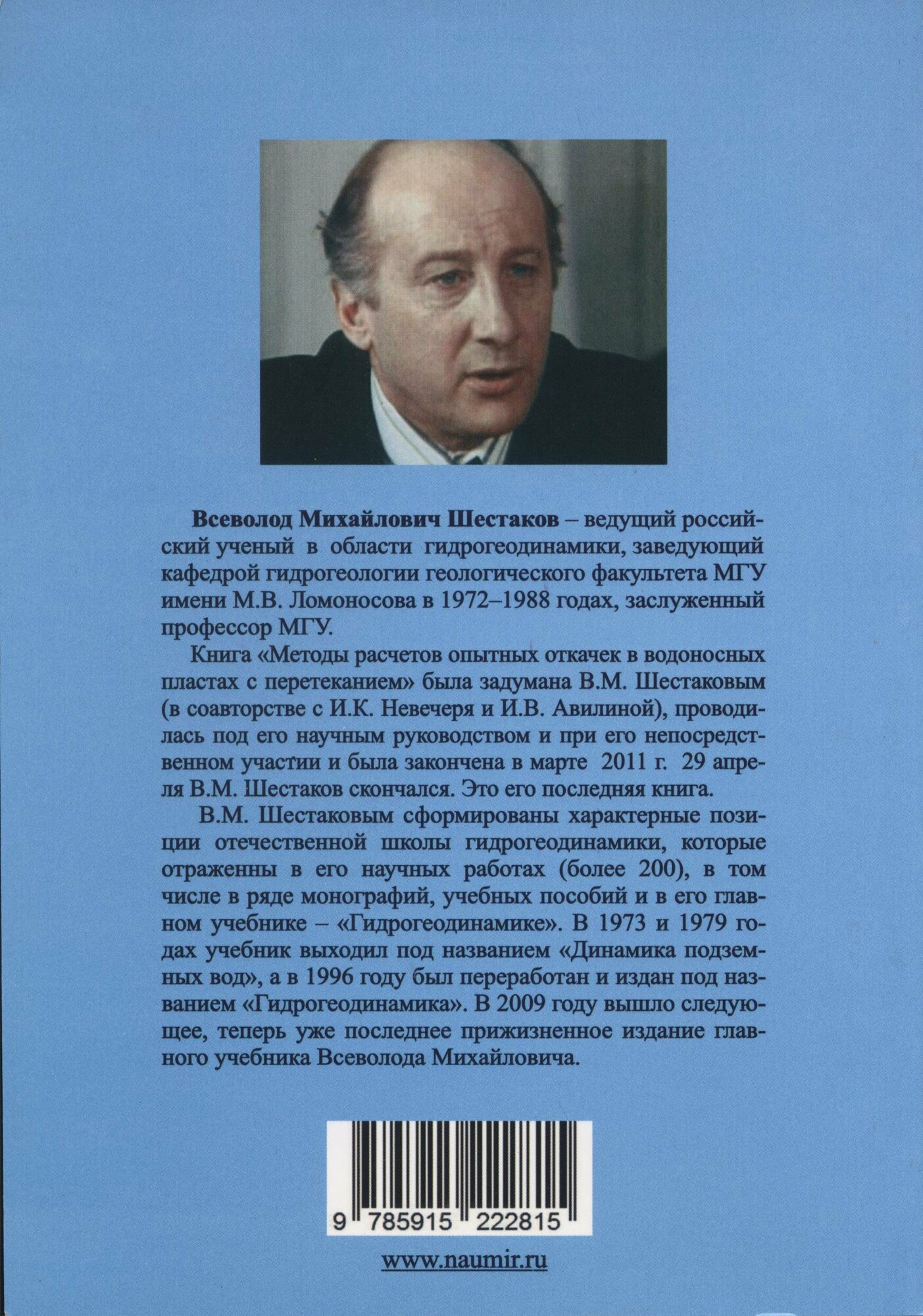 Методы расчетов опытных откачек в водоносных пластах с перетеканием (Шестаков Всеволод Михайлович); Научный мир, 2020