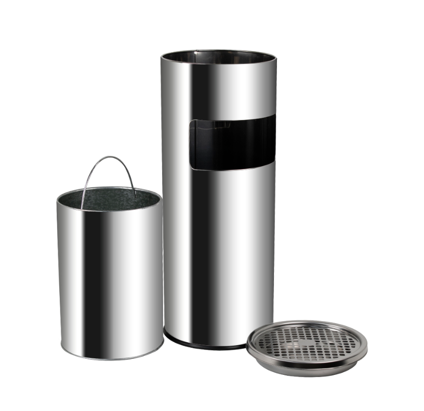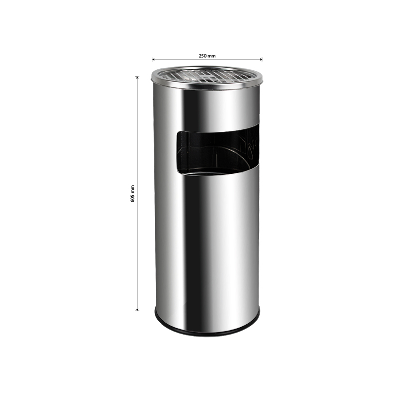 Урна с пепельницей круглая, из нержавеющей стали, хромированная. Верх состоит из съемной решетки с поддоном. Прочная и надежная для окуркови мелкого мусора идеально подходит для использования в офисах, общественных местах и других учреждениях. Изготовлена из нержавеющей стали и покрыта хромом. Благодаря большому объему в 29,5 л, способна вместить большое количество мусора. Легкость и компактность корзины позволяет перемещать её с одного места на другое. Габаритные размеры: высота 605 мм, диаметр 250 мм. Вес - 3,100 кг,