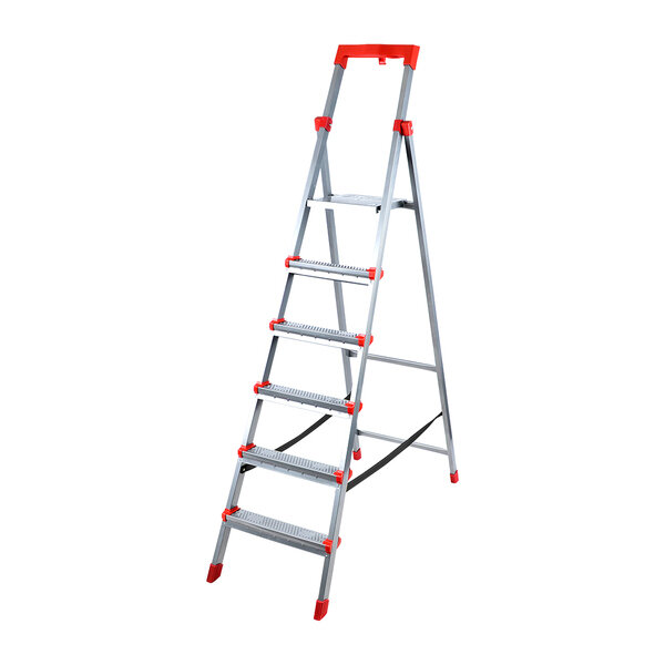 Стремянка очень удобная и эргономичная. Не тяжелая, но при этом устойчивая - для женщины плюс. Удобно складывается и занимает немного места в сложенном виде. Площадка и ступени рельефные - против скольжения. На ручке есть мни-лоток - можно положить ручной инструмент, повесить небольшое ведро. Высота с площадки рассчитана для работы от 3 до 3,5 метров в зависимости от роста.