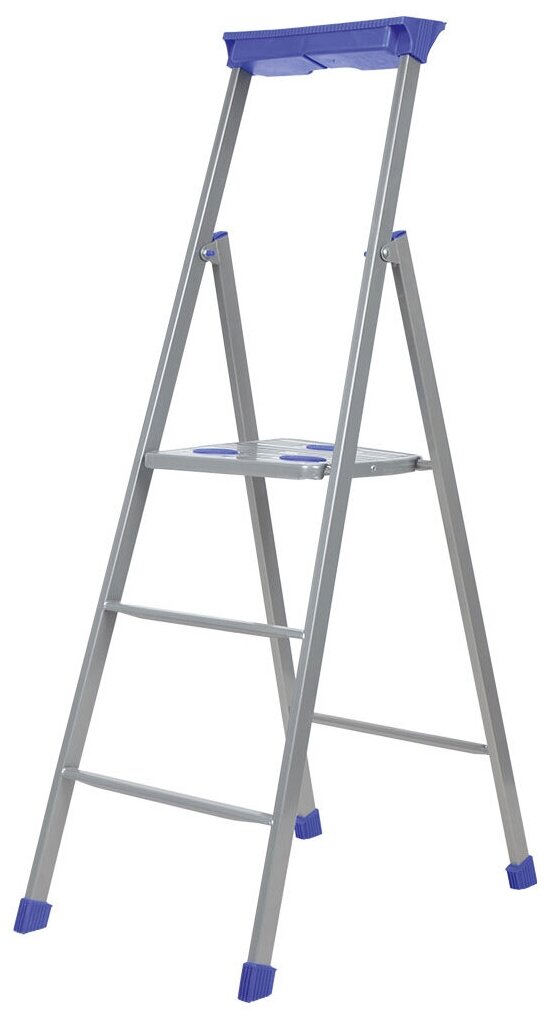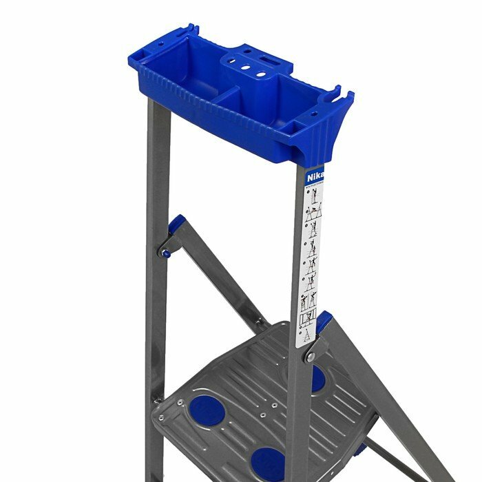Стремянка неудобная. Не обратила внимание в описании, что узкие ступени, на них невозможно стоять, а уж выполнять какие-то работы опасно. Верхняя ступень прогибается под весом 59 кг. Спасибо 21 веку, оперативно одобрили заявку на возврат.