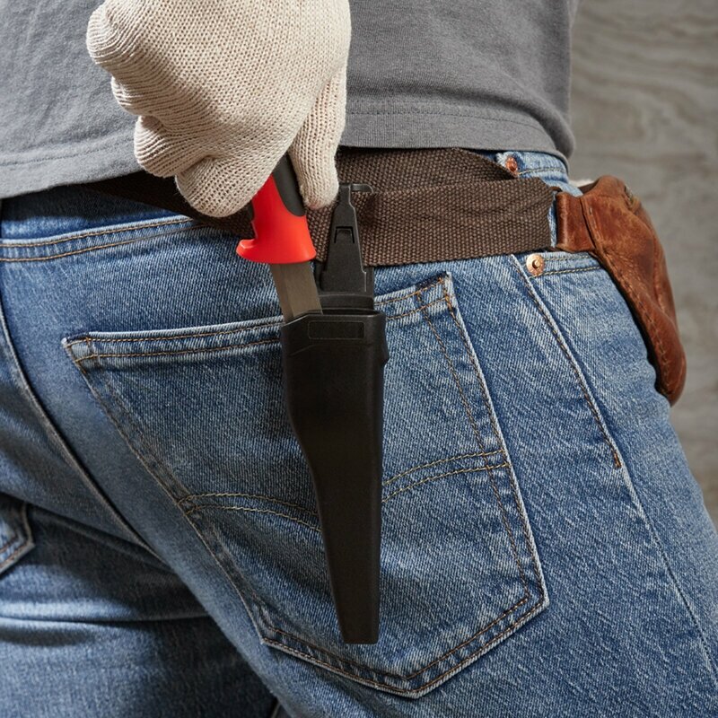 Нож строительный универсальный Rexant предназначен для проведения отделочных и монтажных работ, пригодится на рыбалке и во время туризма. Усиленное лезвие выполнено из качественной стали. Прецизионная заточка обеспечивает чистоту и точность реза. Удобная пластиковая обрезиненная противоскользящая рукоятка обеспечивает комфорт и повышенную безопасность при работе. Нож укомплектован пластиковыми ножнами для удобного и безопасного хранения, транспортировки. На корпусе чехла предусмотрена клипса-зажим, которая позволяет закреплять инструмент на одежде. Нож обладает повышенным рабочим ресурсом.