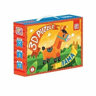 Собирать пазлы любят многие дети. Наверное, у каждого ребёнка среди разнообразия игрушек найдётся не одна коробочка с картинкой, разделённой на множество фигурных кусочков. Мы предлагаем дополнить коллекцию чем-то новым и оригинальным. Набор "Лама" из серии "ЗD-пазлы" - это неординарный подход к складыванию пазлов: они собираются не в плоскую иллюстрацию, а в настоящую трёхмерную модель. Этот развивающий набор предлагает малышу познакомиться с милым экзотическим животным – ламой. Нужно собрать фигурку, соединив между собой яркие детали – и можно играть. Забавная лама твёрдо стоит на ножках, умеет двигать шеей и головой. Пазлы изготовлены из мягкого, приятного на ощупь пенокартона, контрастно и красочно оформлены. Они станут для любого малыша не только отличным развлечением, но и полезной развивающей игрушкой.